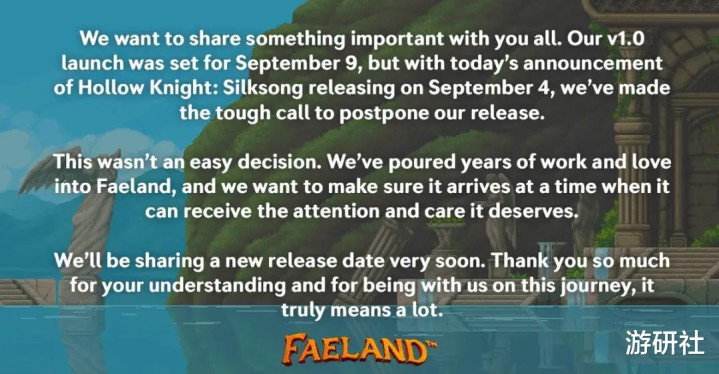 早在2018 年就发起众筹,原定于9月9日正式发售的《Faeland》也紧随其后,宣布了延迟,目前还未公布具体发售日期。